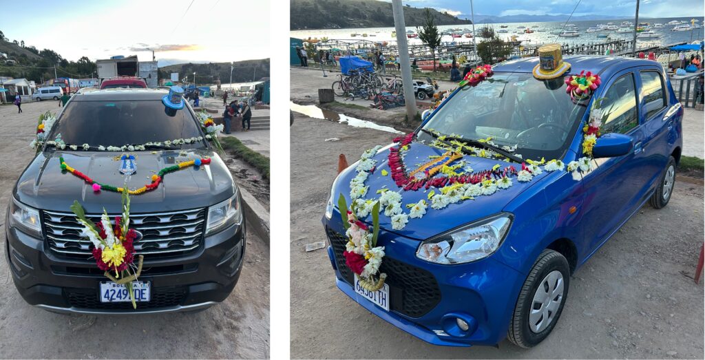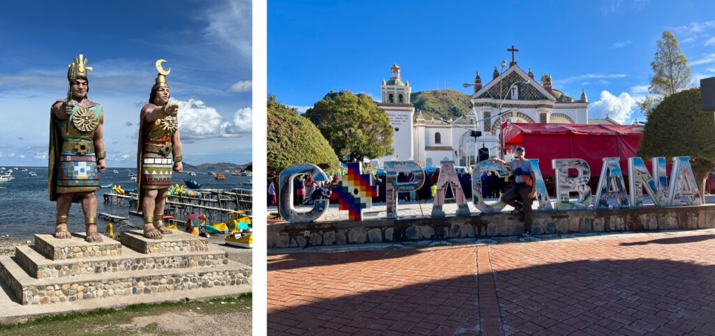 Copacabana in Bolivien ist übrigens der Namensgeber für der gleichnamige (aber viel bekanntere Ort in Brasilien). Ausser, dass beide einen Strand haben und Touristenorte sind, haben sie nicht viel gemeinsam. Copacabana in Bolivien wirkt völlig heruntergekommen. Überall sieht man unfertige Häuser und offene Strassen. Die Flaniermeile unten am Wasser, wirkt eher wie ein grosser unbefestigter Parkplatz mit einer Reihe von Zeltbuden, wo man an Plastik-Tischen und Stühlen überall die gleichen Fischgerichte essen kann.