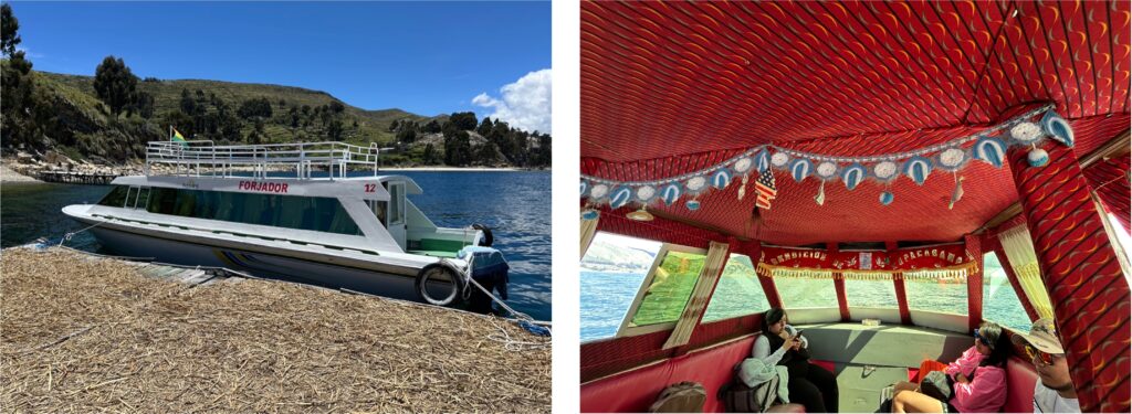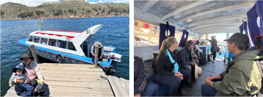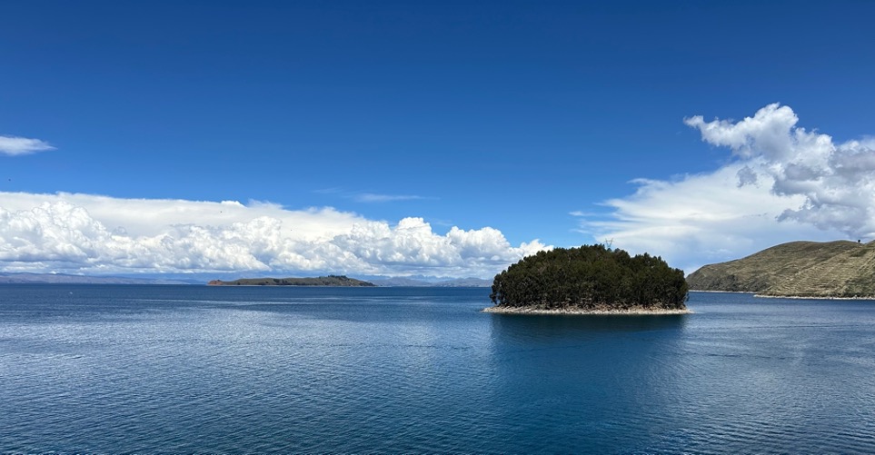 Am zweiten Tag machen wir eine ganztägige Schiffsfahrt über den See zu Sonneninsel, wo es ein paar Inkaruinen hat. Das Geschäft mit den Ausflugsbooten brummt und am Strand können wir zwischen verschiedene Anbieter wählen. Die Boote sehen wie moderne Schnellboote aus, sind aber einfache Holzboote mit zwei Aussenbordern und relativ langsam unterwegs. Der See ist so gross, dass man sich wie auf dem Meer vorkommt, einfach ohne Dünung. Das Wasser ist glasklar und tiefblau, aber die Temperatur von max 13 Grad lädt nicht gerade zum Baden ein.