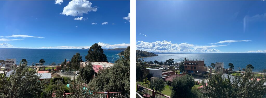 Nach einer spannenden und erlebnisreichen, aber auch kalten Woche in La Paz (das Appartement war zwar schön, aber lausig kalt) fahren wir mit dem Bus in vier Stunden nach Copacabana am Titicaca See. Dort haben wir drei Nächte in ein Hotelzimmer gebucht und freuen uns darauf, endlich ein warmes Zimmer zu beziehen.