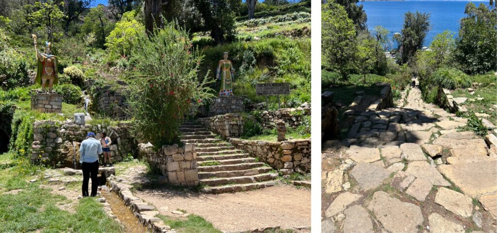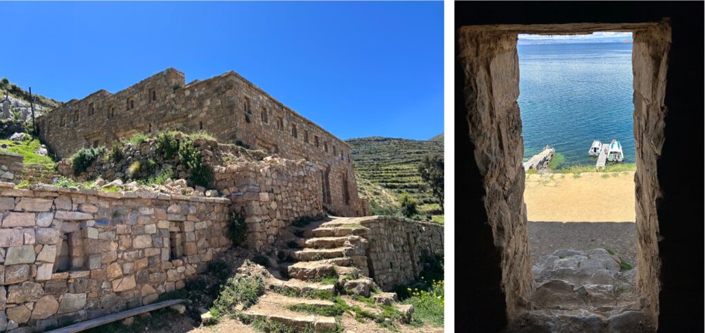 Durch die enorme Grösse und den langsamen Boot, fahren wir stundenlang bis zum ersten Stopp. Schlussendlich bleibt leider nur wenig Zeit zum Erkunden auf der Sonneninsel, wobei hier oben auf 3800 MüM längere Wanderungen zu machen, ist vermutlich sowieso keine allzugute Idee für uns. Die lange Inkatreppe beim ersten Stopp bringt uns in der dünnen Luft hier oben auf jeden Fall schnell an unsere Leistungsgrenzen. Zum Glück liegt die Ruine vom Inkatempel beim zweiten Stopp nur wenige Meter über dem Wasserniveau.