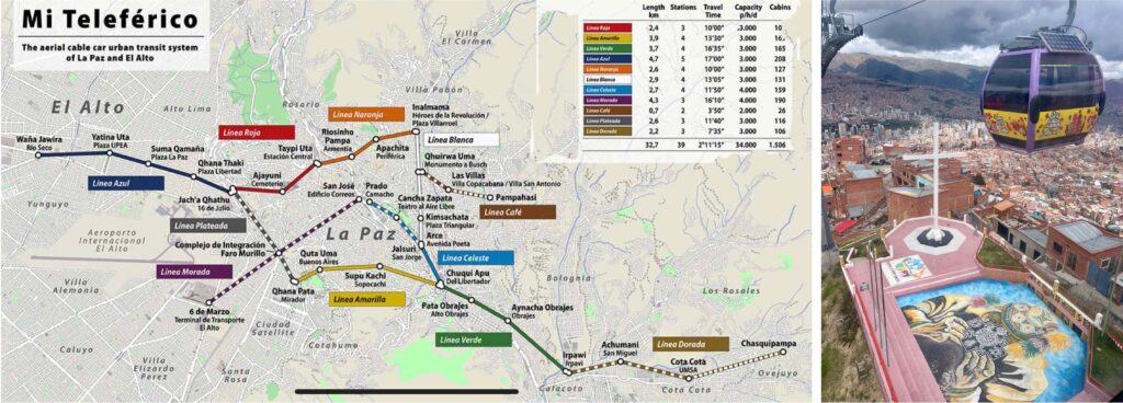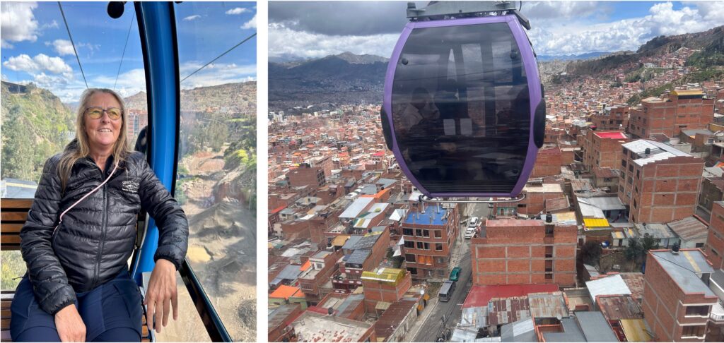 Zum Glück gibt es, als geniale Alternative zum Strassenverkehr den Teleferico – ein sich über das ganze Stadtgebiet erstreckendes Seilbahnnetz. Dieses öffentliche Verkehrsmittel ist schnell, dank Solarstrom umweltfreundlich, effizient, sehr günstig und bietet ausserdem eine fantastische Sicht auf die Stadt.