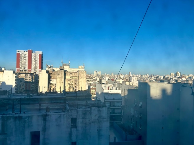 Mit einem Zwischenstopp in Santa Cruz, Bolivien geht es nach Buenos Aires und damit ins zweite Land unserer Reise – Argentina. Und wieder kommen wir nach Mitternacht an. Hier in Südamerika gibt es keine Nachtruhe, der Flugbetrieb läuft rund um die Uhr. Es sei anscheinend sogar so, dass viele Flüge extra nachts landen, weil die Flughafenkosten dann niedriger sind.