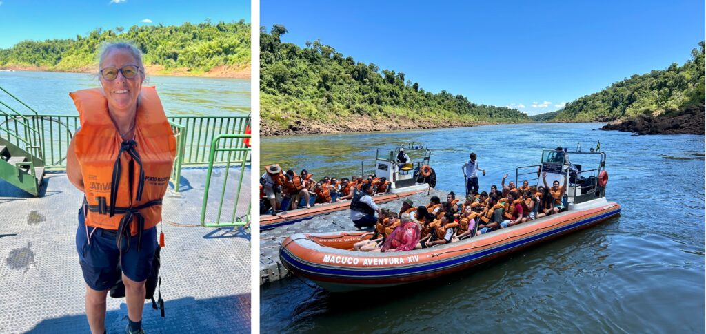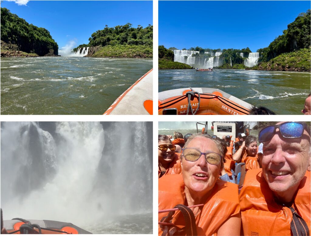 Der Höhepunkt ist aber eindeutig die Fahrt mit dem Speed Boat zu – und vor allem – IN einen Wasserfall rein. Zuerst geht es mit 2 x 250 PS durch die Stromschnellen vom Rio Iguazu und danach von unten in einen der Fälle rein. Adrenalin pur, einfach geil – kann man nicht anders sagen! Dabei wurden wir alle bis auf die Unterhosen nass, kein Problem bei 30 Grad Lufttemperatur und wir wussten ja vorher was auf uns zukommen würde.