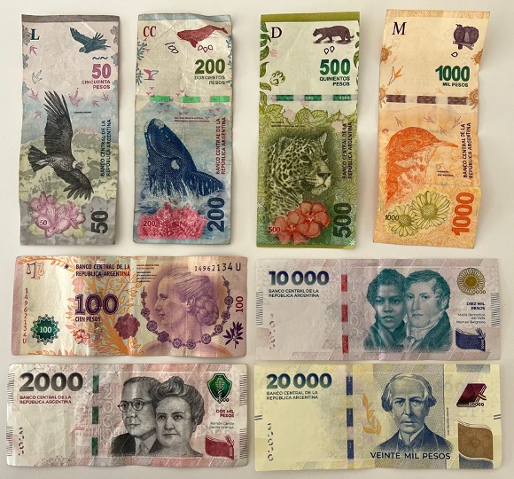 Neues Land, neue Währung, wir brauchen Argentinische Pesos. In Argentinien ist es wegen der ehemals sehr hohen Inflation zu einem Kuriosum gekommen – der Blue Dollar. Ganz genau wie bzw. warum es so ist, haben wir immer noch nicht verstanden, aber in den inoffiziellen (aber legalen) Wechselstuben bekommt man für US$ mehr Argentinische Pesos als wenn man z. B. an einem Bankautomaten Bargeld bezieht. Dafür gibt es spezielle Websites, wo der Tageskurs publiziert wird. Mit dem Wissen kann man dann in den Wechselstuben fragen, was sie bieten. Interessanterweise ist der Kurs besser, je grösser die US$-Noten sind.