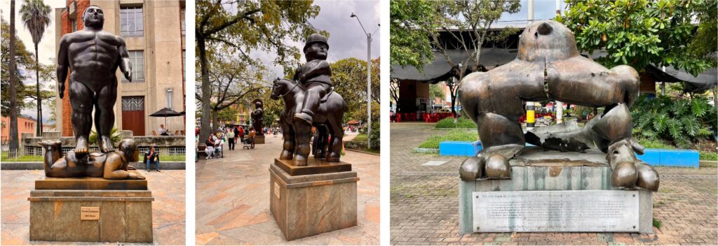 Wenn man durch Medellin läuft, kommt man irgendwann an einer der Skulpturen von Fernando Botero (1932-2023) vorbei. Er war Maler und Bildhauer, geboren in Medellin und wie man sieht, nahm er es mit den Proportionen nicht so genau. Seine Werke werden in Museen und an öffentlichen Orten rund um den Globus gezeigt, darunter in Berlin, Paris, Jerusalem und Singapur. In einer von Boteros Bronzefiguren in Medellín, einer Friedenstaube, explodierte 1995 eine Bombe und tötete 23 Menschen. Noch heute steht der zerfetzte Vogel auf dem Plaza San Antonio im Stadtzentrum. Botero bestand darauf, dass der beschädigte Vogel erhalten bleibt als Symbol, dass Kunst stärker als Terror ist und fertigte eine Replik an, die daneben steht.