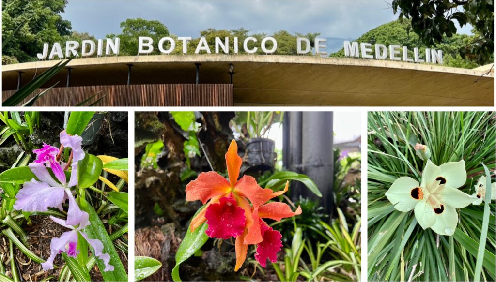 Wir ziehen ohne grossen Plan mal los um ein Gefühl für die Stadt und den öffentlichen Verkehr zu bekommen. Scheinbar gibt es da gerade ein Problem, die nächstgelegene Haltestelle La Palma ist gesperrt und wir müssen statt mit dem modernen Metrobus mit einem kleinen blauen Bus nach El Poblado fahren. Nach einem Besuch im arabischen Restaurant Greta nehmen wir von El Poblado aus die Metro zum Botanischen Garten. Schön ist es hier, sehr gepflegt, der Eintritt ist frei, einzig der einsetzende Regen macht es etwas ungemütlich.