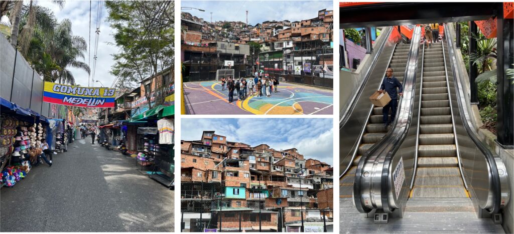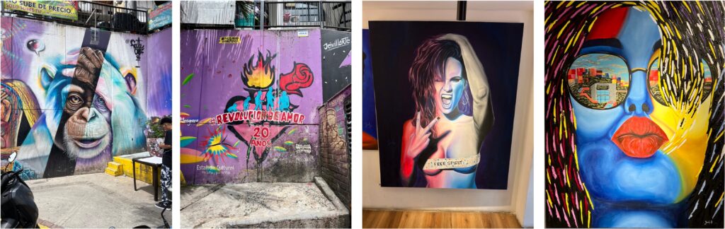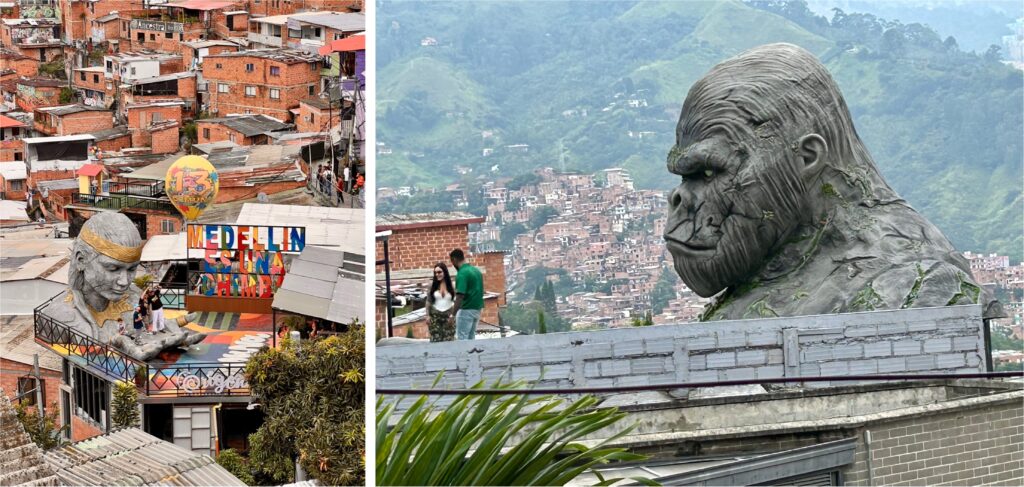 Bis vor 11 Jahren der gefährlichste Stadtteil in Medellin, hat er sich heute zum Touristen-Hotspot gemausert. Es ist noch gar nicht so lange her, da gab es hier weder Strom noch fliessend Wasser. Von den Rolltreppen ganz zu schweigen. Schmale Strassen schlängeln sich bis ganz nach oben, und das ganze Viertel ist mit steilen Treppen ausgerüstet. Es reiht sich Haus an Haus in den Steilhängen, manchmal lediglich durch einen schmalen Gehweg getrennt, das muss man mögen und auch ertragen können.