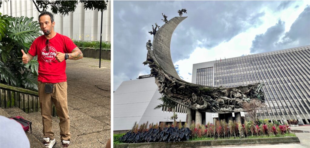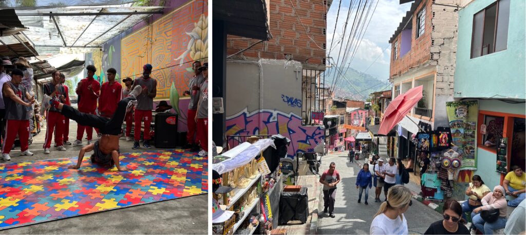 Dazwischen gibt es Cafés, Restaurants und Souvenirläden. Und natürlich Streetfood und Strassenhändler. Wir sehen wenig bis keine Grünflächen, ab und zu einen Baum oder Strauch. Das Viertel ist bunt und laut. Es gibt vermutlich genauso viele Motorräder wie Einwohner. Kevin ist unser Tourguide. Er ist hier geboren und aufgewachsen. Er hat hautnah erlebt, wie sich „sein Viertel“ von roher Ganggewalt mit Hinrichtungen auf dem Sportplatz zu einem Touristischen Viertel entwickelt hat. Seine Generation wurde mit Hip-Hop, Graffiti und Breakdance gross, eine Alternative zu Drogengangs, denn die „Kämpfe“ werden mit Tanz und Worten beim Rappen ausgefochten.