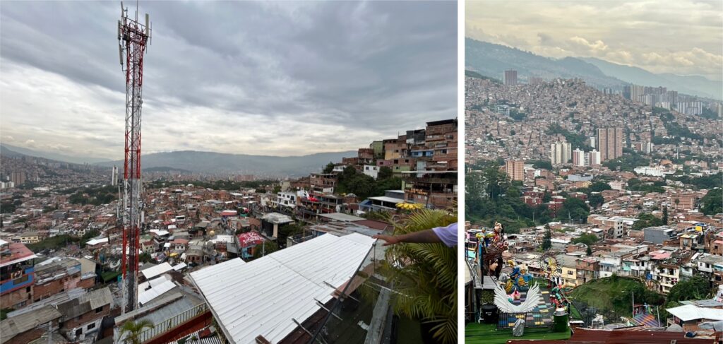 Die Erde Kolumbiens enthält scheinbar gewisse Stoffe, die in keinem anderen südamerikanischen Land zu finden sind. Zwei Güter, die dadurch in Kolumbien die allerbesten Wachstumsbedingungen haben, sind Kaffee und Koka. Der grösste Teil von beidem wird exportiert und der Verdienst verschwindet in irgendwelchen Taschen. Die Bevölkerung hat keinen Vorteil davon. Medellin galt bis vor 30 Jahren als die gefährlichste Stadt der Welt, heute steht sie für innovative Stadtentwicklung und Nachhaltigkeit. Es wurde unheimlich viel Geld in Infrastruktur, soziale Projekte und Ausbildung investiert. Dazu zählen zum Beispiel die Rolltreppen in der Comuna 13 oder die elektrischen Seilbahnen, die die ärmsten Viertel an den steilen Hängen des Valle de Aburra an die städtische Infrastruktur im Tal anbinden. Dio erzählt auch, dass die Stadt öffentliche moderne interaktive Bibliotheken ganz bewusst bis in die Randgebiete gebaut hat. So soll allen Bevölkerungsschichten Zugang zu Bildung ermöglicht werden. Die Stadtteile sind in Zonen unterteilt. Wer aus den ärmeren Zonen kommt, muss keine Studiengebühren bezahlen. Die aus den reicheren Zonen bezahlen je nach Einkommen. Die Comuna 13 ist aus Dio’s Sicht wie Disneyland und alle Touristen, die dort eine Tour machen oder Souvenirs kaufen, würden nur das korrupte erpresserische System unterstützen.