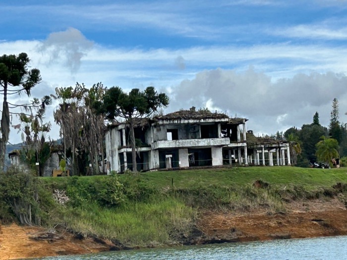 Bevor es zurück nach Medellin geht, machen wir noch die Bootsfahrt auf dem Stausee. Vorbei an der verfallenen Villa vom Drogenbaron Pablo Escobar weiter bis zu den supermodernen Glasbauten einiger kolumbianischer Fussballstars. Überall ragen kleine Inseln und Halbinseln mit Ferienhäusern und Villen aus dem Wasser. Ein wahres Idyll.