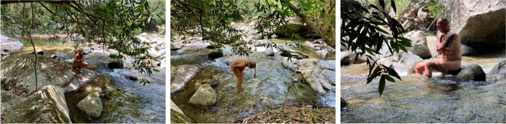 Jan, unser etwas esoterisch angehauchter und sehr sympathischer Vermieter erklärt uns nur das Wichtigste und nachdem wir unsere 7 Sachen provisorisch verstaut haben, gehen wir erst mal runter zum Fluss und nehmen ein sehr erfrischendes Bad – eine private Badestelle nur für uns – herrlich!