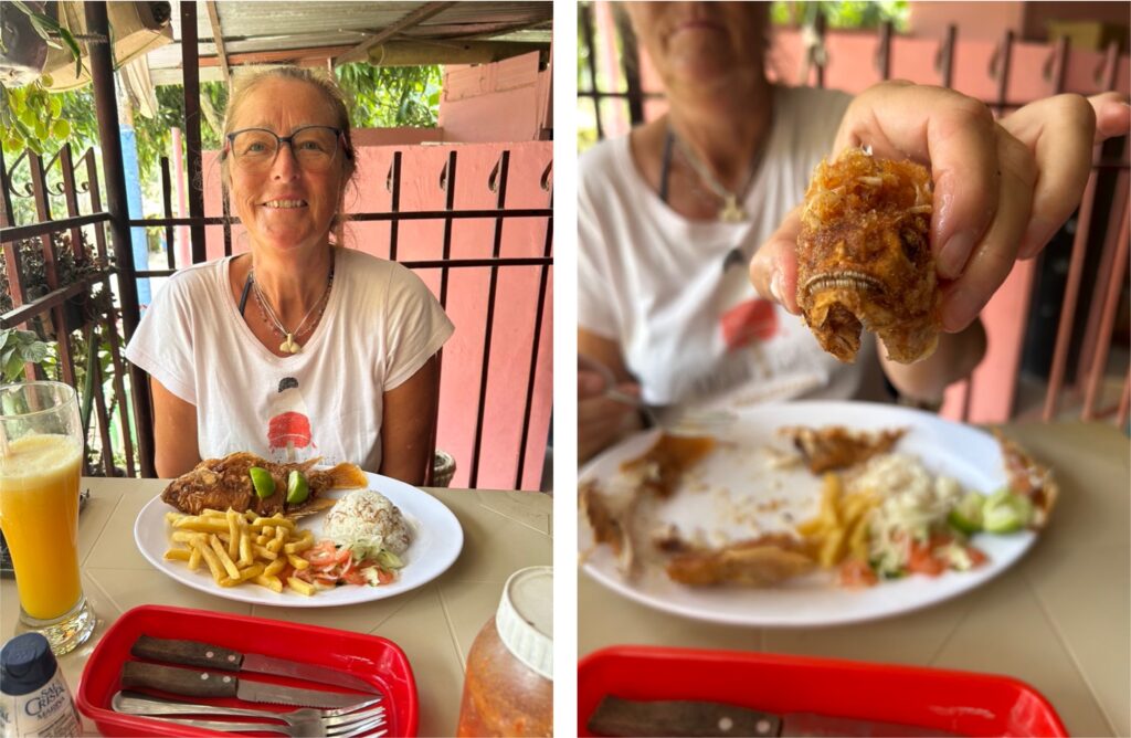 Die Reisekasse zu schonen und gleichzeitig auswärts Essen, ist in Kolumbien kein Widerspruch. Wir gehen meistens in ein einheimisches Restaurant ausserhalb der Touristenstrassen. Dort gibt es jeweils 3-4 Tagesgerichte zur Auswahl. Mit Suppe, Hauptgericht, Getränk und manchmal sogar ein kleines Dessert, kostet es uns zwischen € 3-4.-/Person. Und dabei ist das Essen sowohl schmackhaft wie auch sehr reichhaltig.