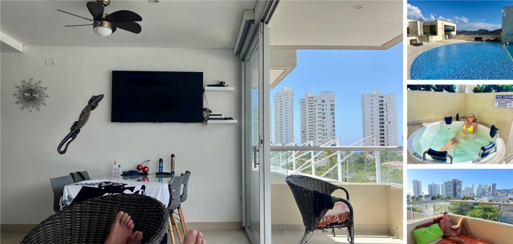 Neuer Tag – neues Glück, die neue Unterkunft ist fix gebucht und dem Umzug steht nix mehr im Weg. Auf nach Gaira, 6,5 km südlich von Santa Marta in eine moderne Wohnung mit Aufzug, Klimaanlage und einem Swimmingpool auf dem Dach. Ein schöner sauberer Strand ist auch in der Nähe, und ein Biergarten und ein Friseur – alles richtig gemacht. Und horch mal – ich hör nix – Stille, in der Nacht – willkommen in der ruhigen Nachbarschaft.