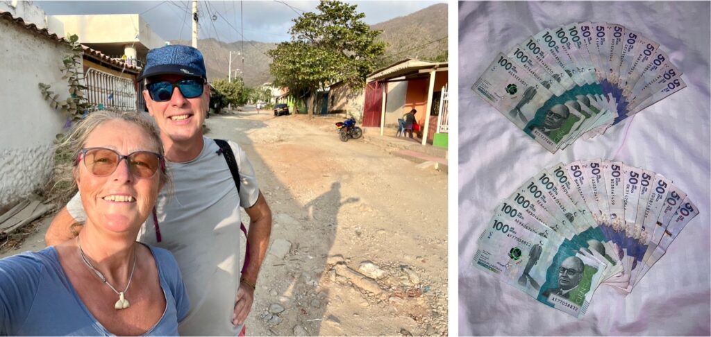 Wir haben uns kurzfristig zu Millionären gemacht. In Kolumbien alles kein Problem. Ran an den Geldautomaten (sofern er funktioniert) und kurz mal 2 Millionen ziehen – Pesos natürlich. Umgerechnet etwa 446 €… Wir rechnen damit, in den nächsten Tagen nicht immer mit Karte zahlen zu können, weil wir jetzt für einige Tage in den Tayrona Nationalpark wollen.