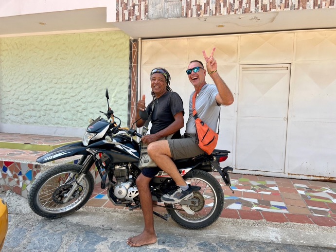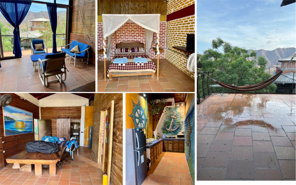 Santa Marta empfängt uns mit tropischem schwül heissem Wetter. Vom Flughafen düsen wir mit dem Taxi über die staubigen Strassen von Santa Marta dort hin (… wo die Strassen erst gar nicht geteert sind). Die Adresse unserer Unterkunft ist nicht eindeutig und unser Taxista lässt uns mit einem ungläubigen und fast mitleidigen Blick an einer Ecke raus, die Google als Zielort vorschlägt. Ratlos gucken wir uns an und kontaktieren nochmals unseren Vermieter. Zum Glück sind wir gar nicht sooo weit weg von unserer Unterkunft. Nur noch 5 Minuten zu Fuss in sengender Hitze bepackt wie die Esel und wir haben es geschafft. Mit wenig Gepäck zu reisen haben wir trotz der inzwischen recht langen Reisezeit noch nicht hinbekommen. Ist aber auch der Tatsache geschuldet, dass wir die in Bolivien dazu gekauften warmen Kleider jetzt auch mitschleppen.