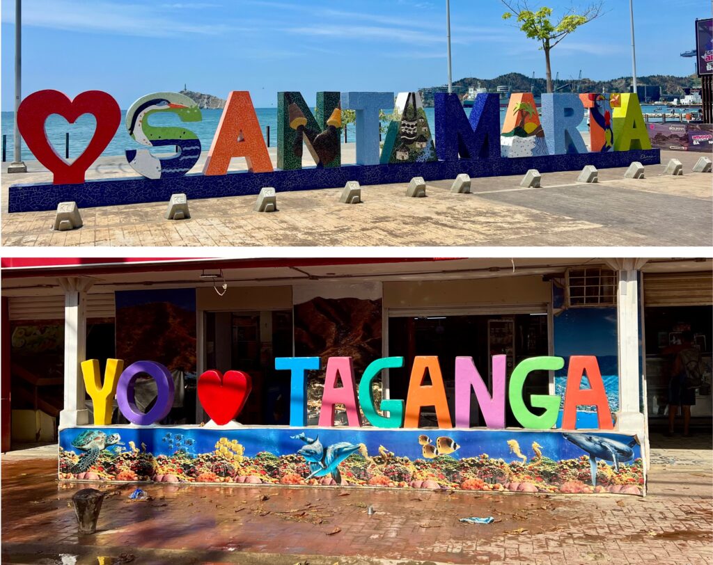 Taganga wird in diversen Reiseberichten als einfaches, authentisches Fischerdorf mit vielen schönen Stränden und einem unaufgeregten und entspannten Lebensrythmus angepriesen. Die Begriffe einfach und entspannt treffen es genau, aber von wegen authentisch: es ist der Ausflugsort schlechthin. An der Uferpromenade reihen sich Restaurants, Bars und Touristenshops aneinander. Überall stehen Taxis und Mototaxis rum und buhlen lautstark um Kundschaft. Am Wochenende ist der Bär los und die laute Musik von der Strandpromenade ist weit herum hörbar. Was uns aber wirklich schockt ist der allgegenwärtige Abfall. Der Strand sowie die Strassen und Hänge sind mit Müll übersäht. Und von den angeblich vorhandenen „unberührten“ Stränden ist weit und breit nichts zu sehen. Wir haben alle Strände abgeklappert und überall hat es Imbissbuden, Strandliegenverleihe und – Abfall.