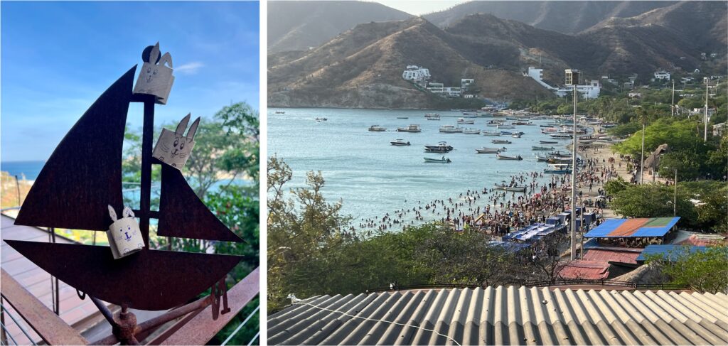 Die 6. schlaflose Nacht. Jetzt langt‘s uns. Auch nach den Feiertagen kennen die Tagangeros kein Erbarmen mit uns und beschallen uns nachts weiter unentwegt mit so lauten Beats, dass an Schlaf nicht zu denken ist. Zumindest für mich, Biggi – die Glückliche – legt sich einfach hin und es schläft. Jetzt wacht aber sogar sie auf, weil ich neben ihr wegen dem Lärm und der Mückenplage fast ausraste. Deshalb zücken wir beide mitten in der Nacht die Mobilgeräte und schauen nach einer anderen Unterkunft. Weit weg von hier! Am besten auf der anderen Seite von Santa Marta. Wir werden fündig.