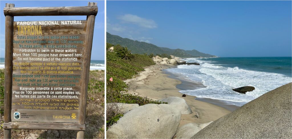 Unterwegs gibt es immer wieder Restaurants, Kioske und Eisverkaufsstände an denen man sich erfrischen kann. Kogi, Arhuaco, Wiwa und Kankuamo sind die indigenen Bewohner des Nationalparks. An ein paar wenigen Orten entlang des Wanderpfades verkaufen sie frisch gepressten Orangensaft, Kaffee und Kokosnüsse, selbstgemachte Armbänder und geflochtene Taschen. Der Park ist für die indigene Bevölkerung ein Ort der Spiritualität. Auf ihren Wunsch hin wird der Nationalpark seit 2015 mehrmals im Jahr für ein paar Wochen geschlossen, damit sich Flora und Fauna von den Touristenströmen erholen können. Wir finden das eine sehr gute Einrichtung. Umso unverständlicher ist das Verhalten jener Besucher, die jegliche Betretungsverbote ignorieren, um das vermeintlich beste Selfie aufzunehmen.