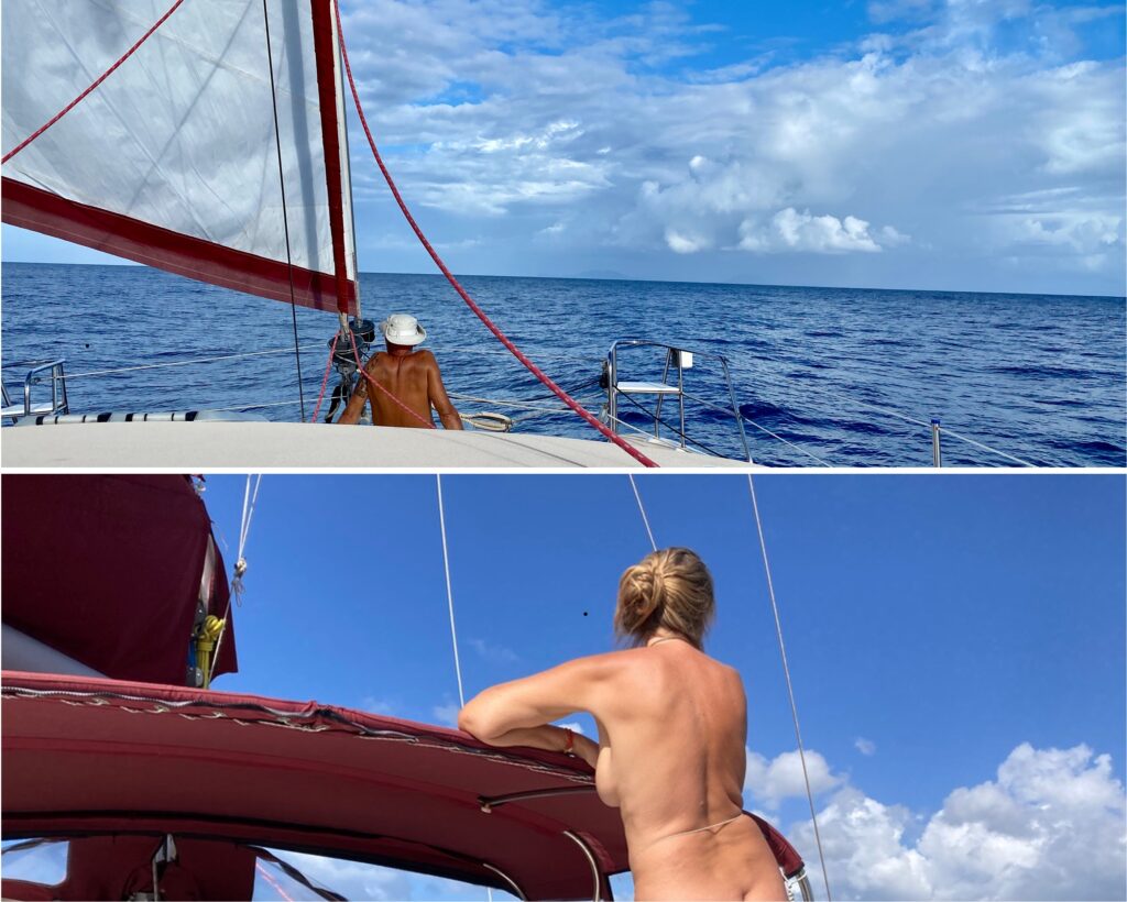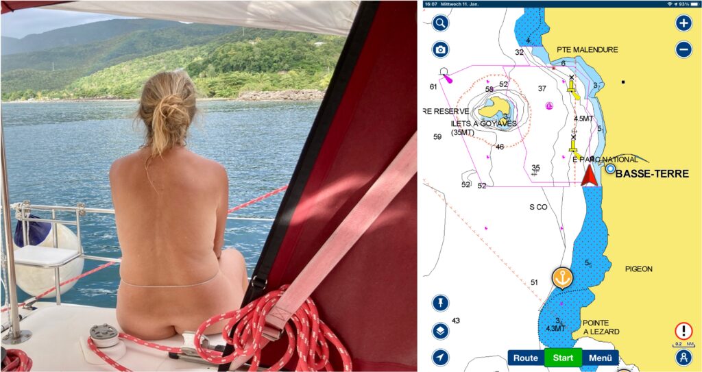 Die Strecken zwischen den Ankerplätzen sind hier schon fast absurd kurz, oft weniger als 5 Seemeilen. Bei diesen Abständen lohnt sich das Segeln nicht wirklich. Das liegt jetzt weniger an unserer (zugegeben) ausgeprägten Faulheit, sondern daran, dass wir unsere Motoren nur dann anstellen, wenn wir das Boot bewegen. Viele andere benutzen ihre Maschinen um die Batterien zu laden. Das haben wir mit genügend Solarzellen bewusst anders gelöst, weil es ziemlich ineffizient ist, einen grossen Dieselmotor laufen zu lassen nur um die Batterien zu laden. Im Gegenzug schauen wir, dass unsere Maschinen – wenn sie denn gebraucht werden – auch richtig warm werden. Da ist es sinnlos die Motoren sofort nach dem Anker heben wieder abzustellen, 4 Meilen zu segeln und sie dann wieder anzustellen. So mutiert RARE BREED hier ein wenig zum Motorboot.